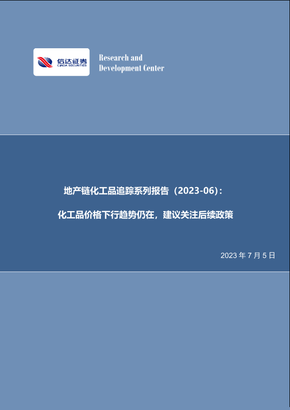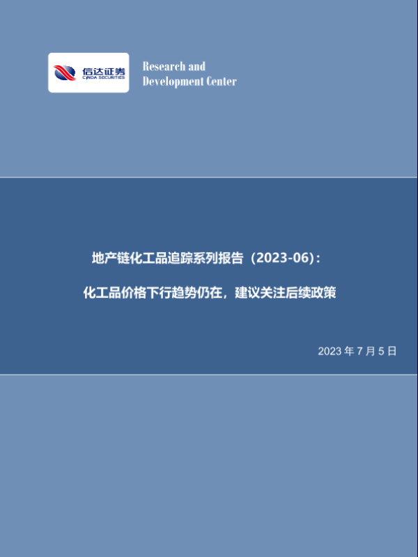 【信达证券】【20230705】化工行业地产链化工品追踪系列报告(2023-06):化工品价格下行趋势仍在,建议关注后续政策-28页