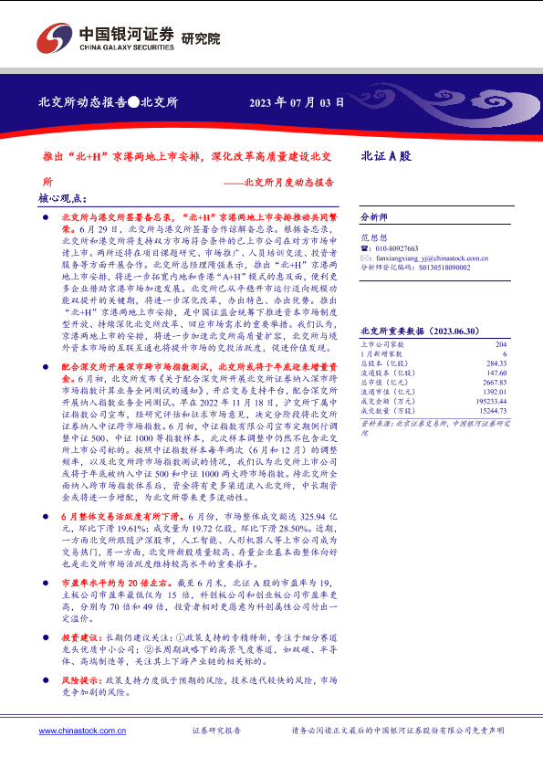 【银河证券】【20230703】北交所月度动态报告:推出“北+H”京港两地上市安排,深化改革高质量建设北交所-23页