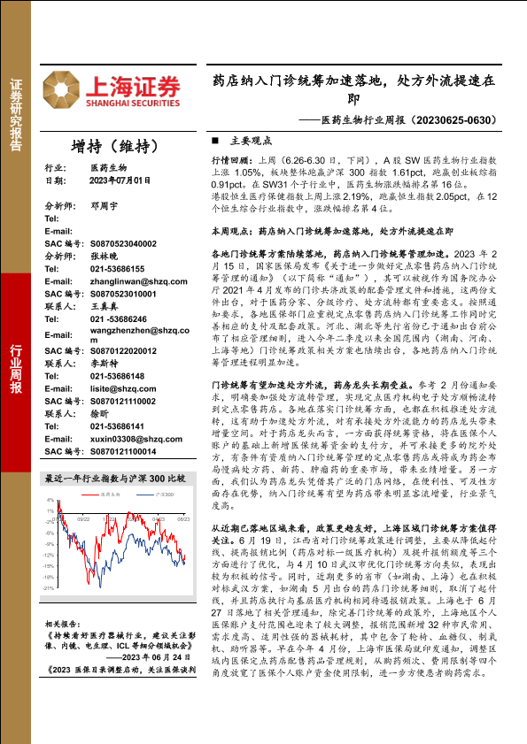 【上海证券】【20230701】医药生物行业周报:药店纳入门诊统筹加速落地,处方外流提速在即-23页