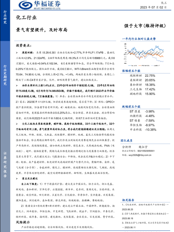 【华福证券】【20230702】化工行业-景气有望提升-及时布局-34页