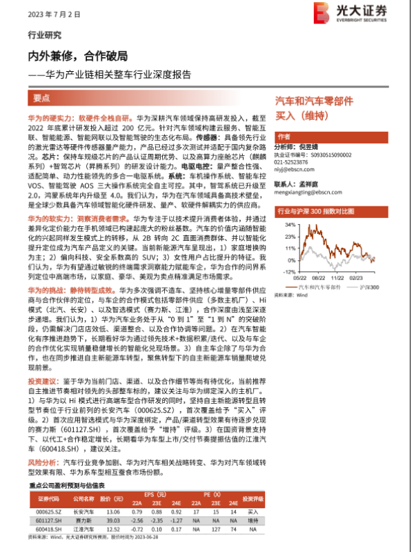 【光大证券】【20230702】华为产业链相关整车行业深度报告:内外兼修,合作破局-60页