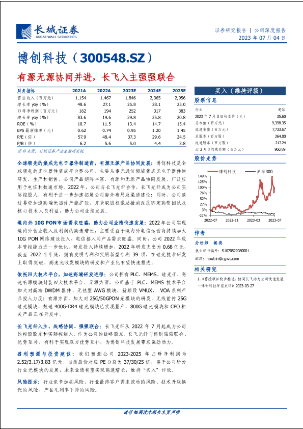 【长城证券】【20230704】博创科技300548.SZ有源无源协同并进,长飞入主强强联合-28页