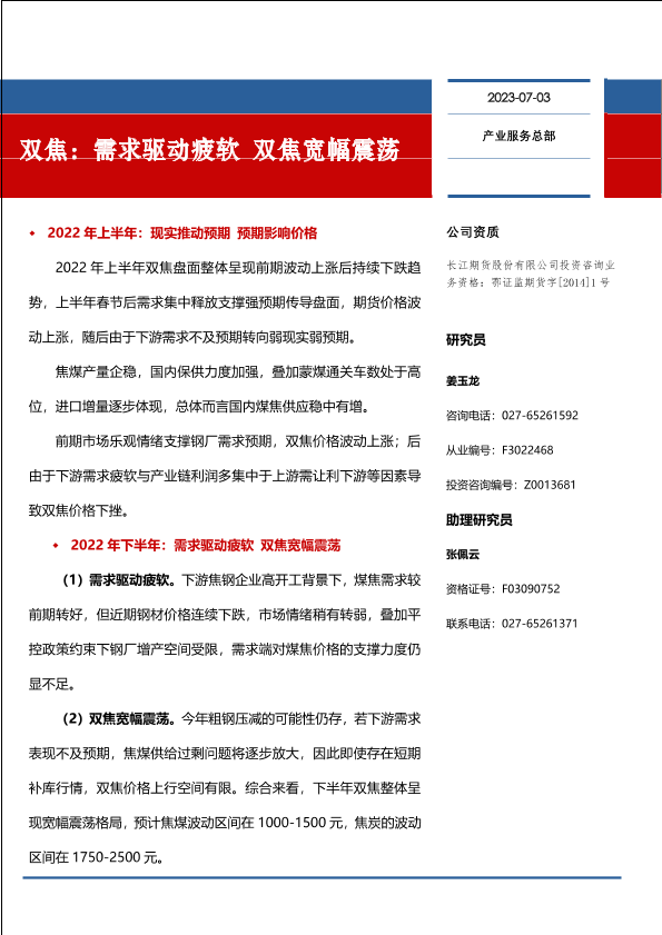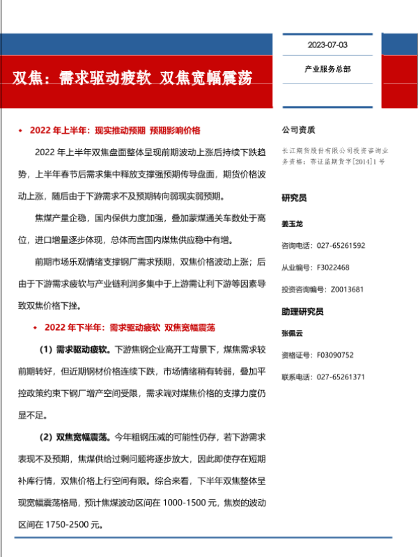 【长江期货】【20230703】双焦:需求驱动疲软,双焦宽幅震荡-16页