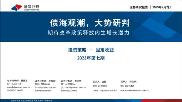 【国信证券】【20230702】固定收益2023年第七期:债海观潮,大势研判,期待改革政策释放内生增长潜力-54页