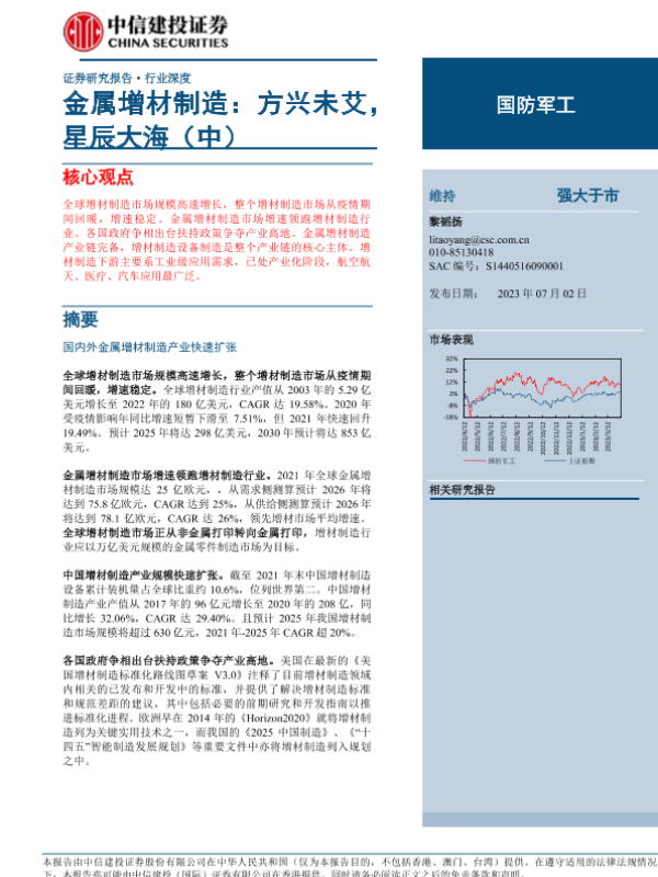 产业发展 国防军工 市场分析 政策扶持 金属增材制造