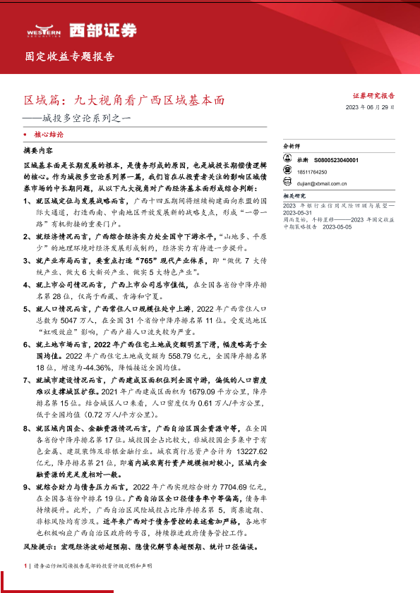 【西部证券】【20230629】城投多空论系列之一:区域篇,九大视角看广西区域基本面-25页