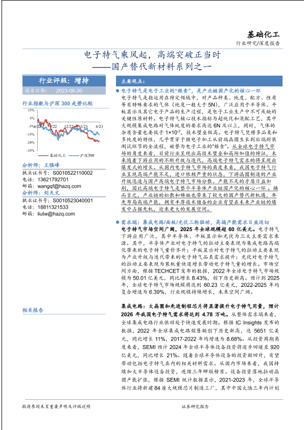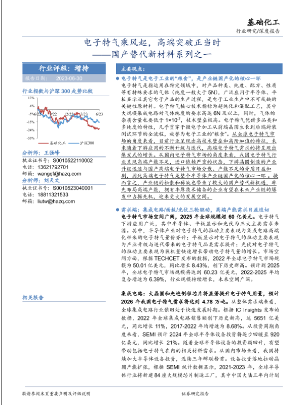 【华安证券】【20230630】基础化工行业国产替代新材料系列之一:电子特气乘风起,高端突破正当时-34页