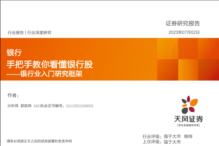 【天风证券】【20230702】手把手教你看懂银行股——银行业入门研究框架-36页