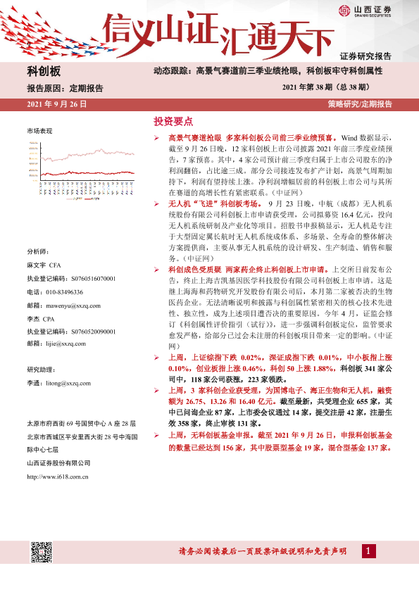 【山西证券】【20210926】动态跟踪2021年第38期(总38期):高景气赛道前三季业绩抢眼,科创板牢守科创属性-23页