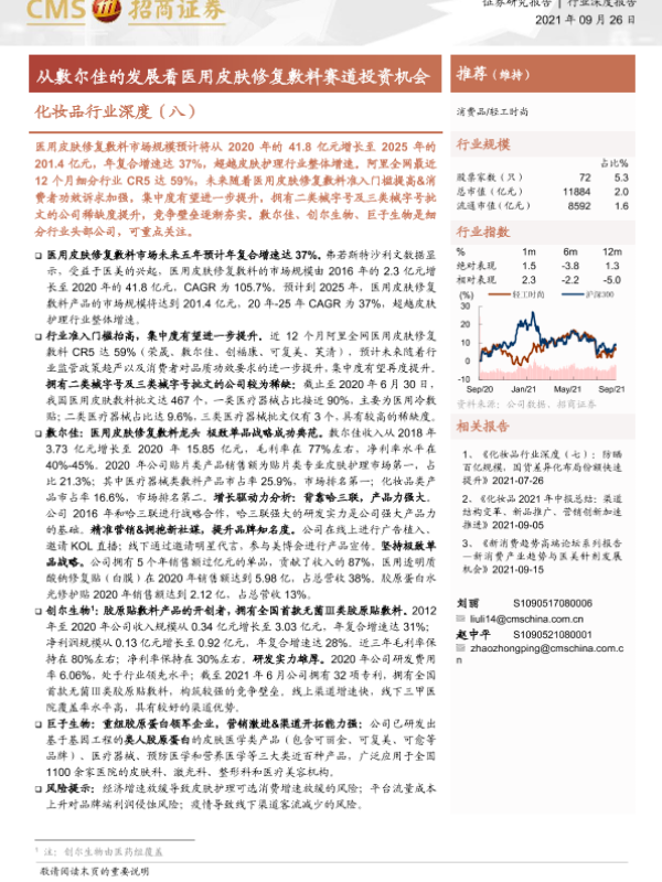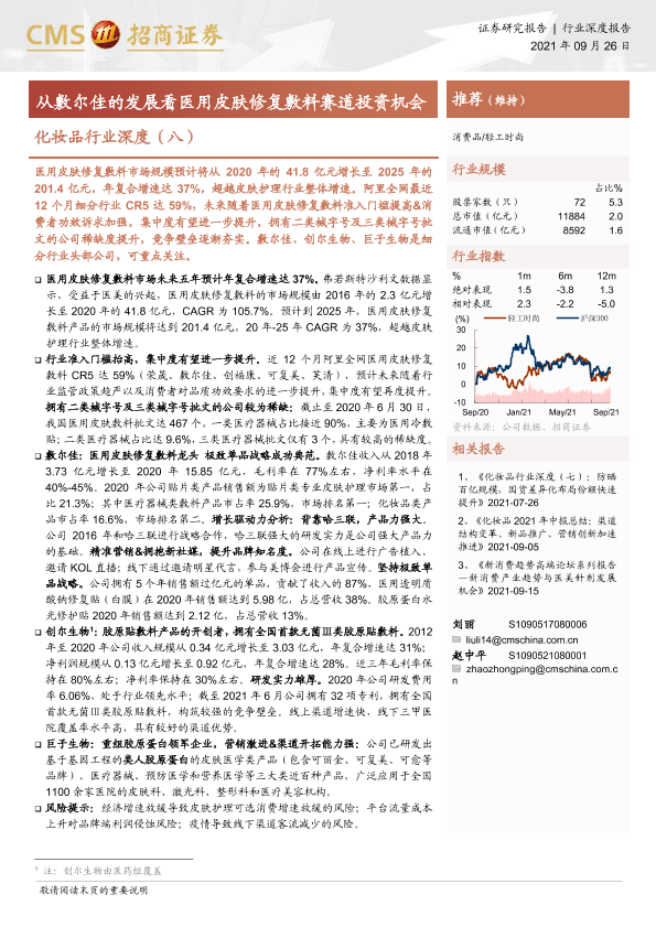 【海通证券】【20210926】化妆品行业深度(八):从敷尔佳的发展看医用皮肤修复敷料赛道投资机会-21页