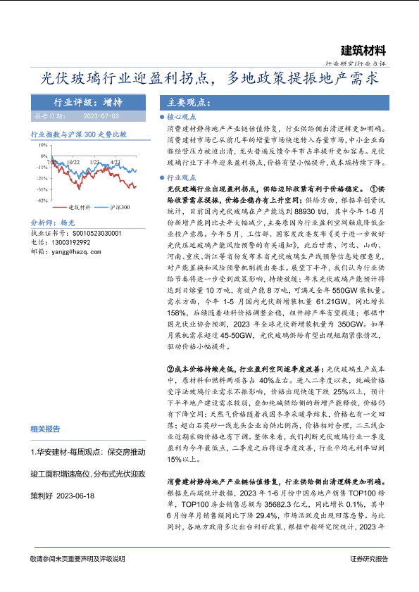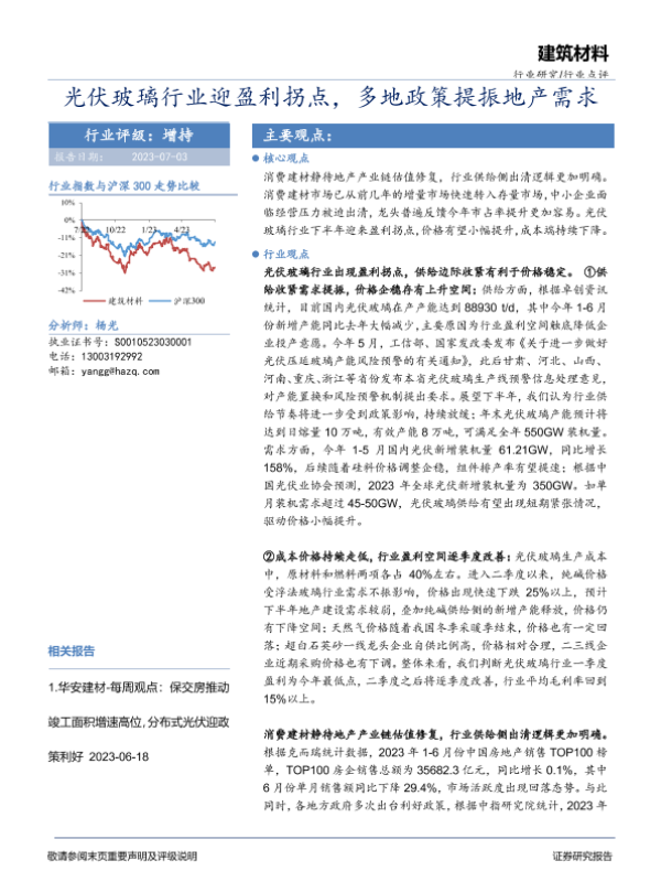 【华安证券】【20230703】建筑材料行业:光伏玻璃行业迎盈利拐点,多地政策提振地产需求-21页