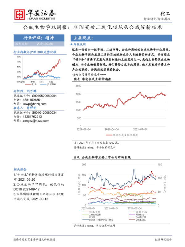 【华安证券】【20210926】化工行业合成生物学双周报:我国突破二氧化碳从头合成淀粉技术-94页