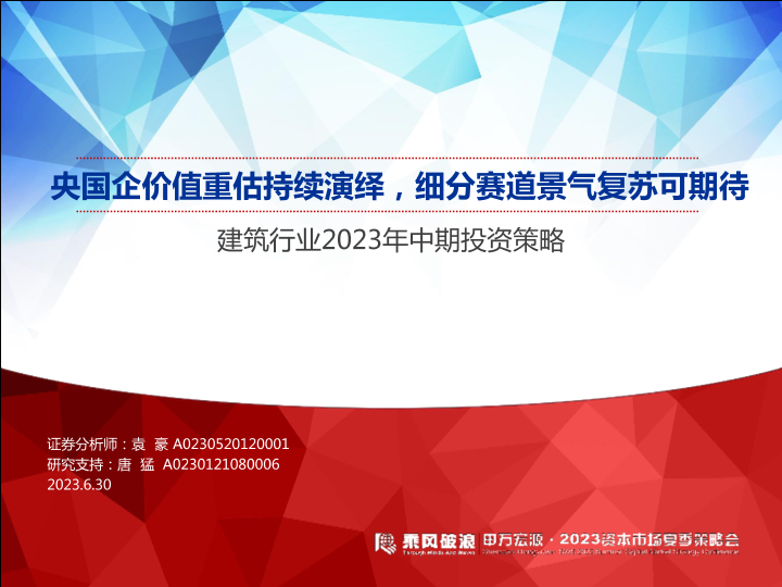 【申万宏源】【20230630】建筑行业2023年中期投资策略:央国企价值重估持续演绎,细分赛道景气复苏可期待-54页