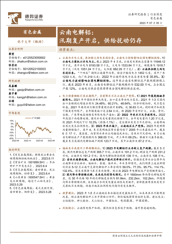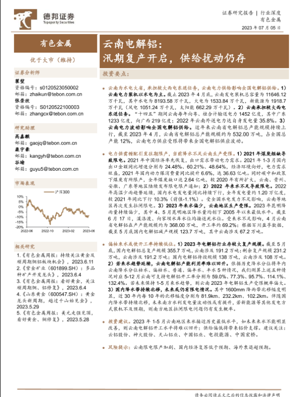 【德邦证券】【20230605】德邦证券:有色金属行业深度-云南电解铝-汛期复产开启-供给扰动仍存-20页