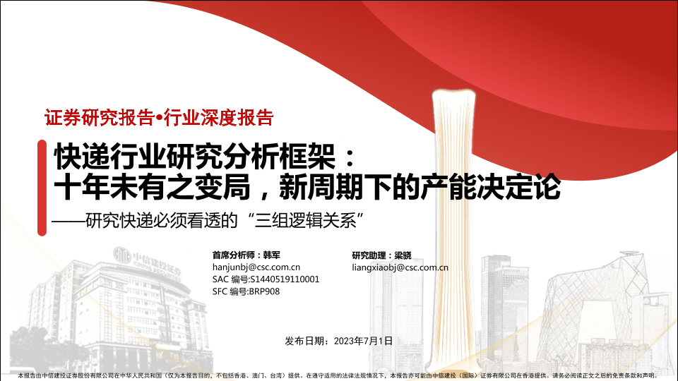 【中信建投证券】【20230701】快递行业研究分析框架:研究快递必须看透的“三组逻辑关系”,十年未有之变局,新周期下的产能决定论-58页