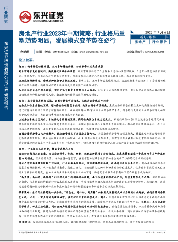 【东兴证券】【20230706】房地产行业2023年中期策略:行业格局重塑趋势明显,发展模式变革势在必行-21页