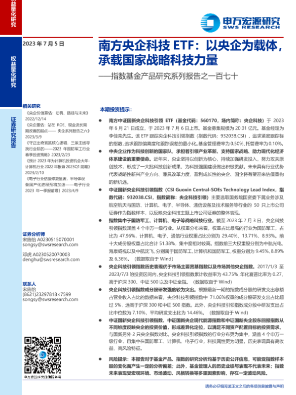 【申万宏源】【20230705】指数基金产品研究系列报告之一百七十:南方央企科技ETF,以央企为载体,承载国家战略科技力量-26页