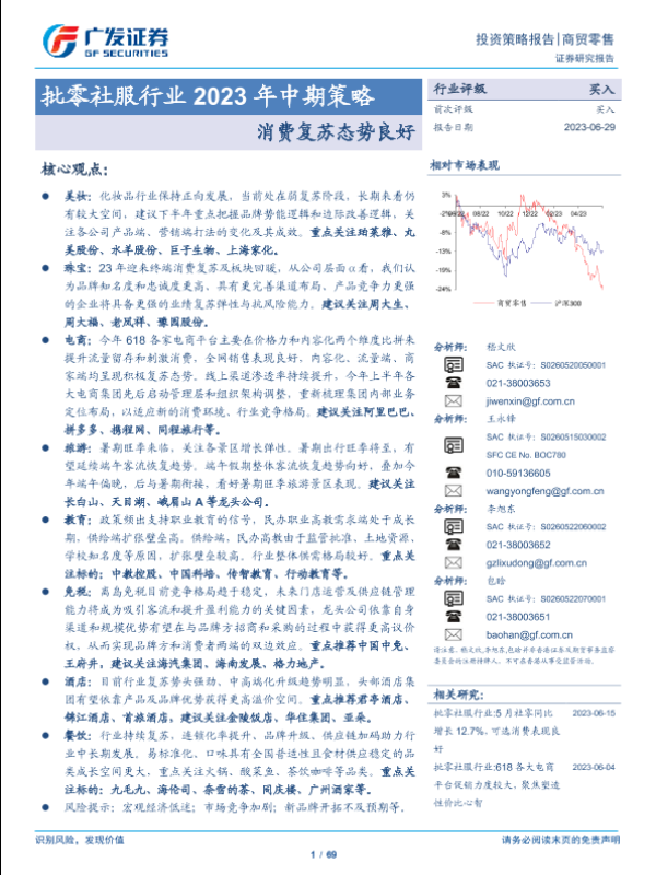 【广发证券】【20230629】批零社服行业2023年中期策略:消费复苏态势良好-69页