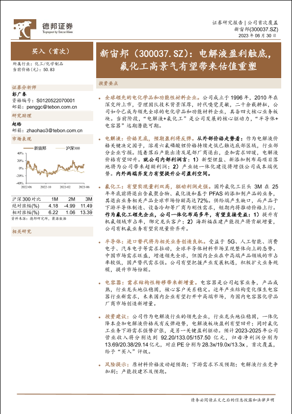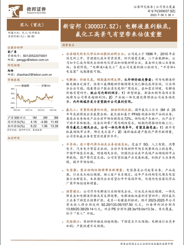 【德邦证券】【20230630】新宙邦(300037)电解液盈利触底,氟化工高景气有望带来估值重塑-24页