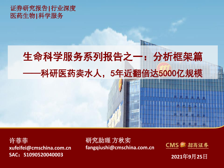【海通证券】【20210925】医药生物行业生命科学服务系列报告之一:分析框架篇,科研医药卖水人,5年近翻倍达5000亿规模(更新)-31页