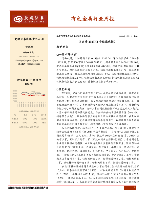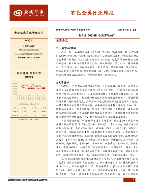 【爱建证券】【20230703】有色金属行业周报:怎么看2023H1个股涨跌幅?-41页