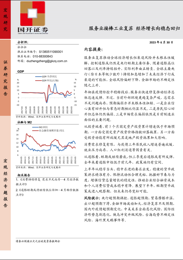 【国开证券】【20230630】服务业接棒工业复苏,经济增长向稳态回归-25页
