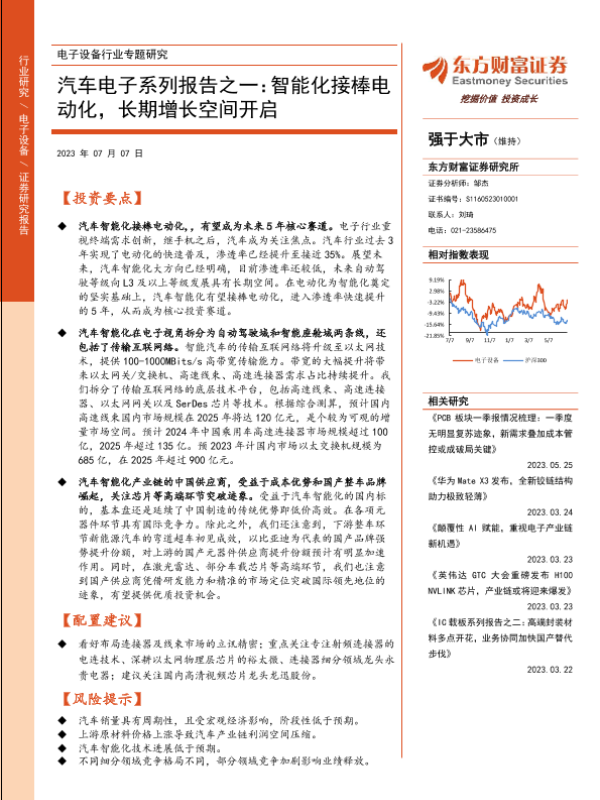 【东方财富证券】【20230707】汽车电子系列报告之一:智能化接棒电动化,长期增长空间开启-27页