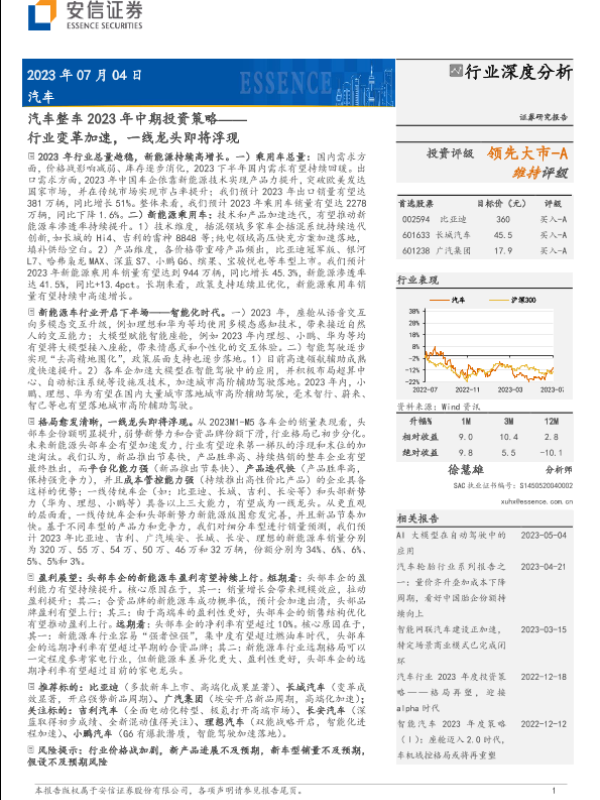 【安信证券】【20230704】汽车整车行业2023年中期投资策略:行业变革加速,一线龙头即将浮现-53页