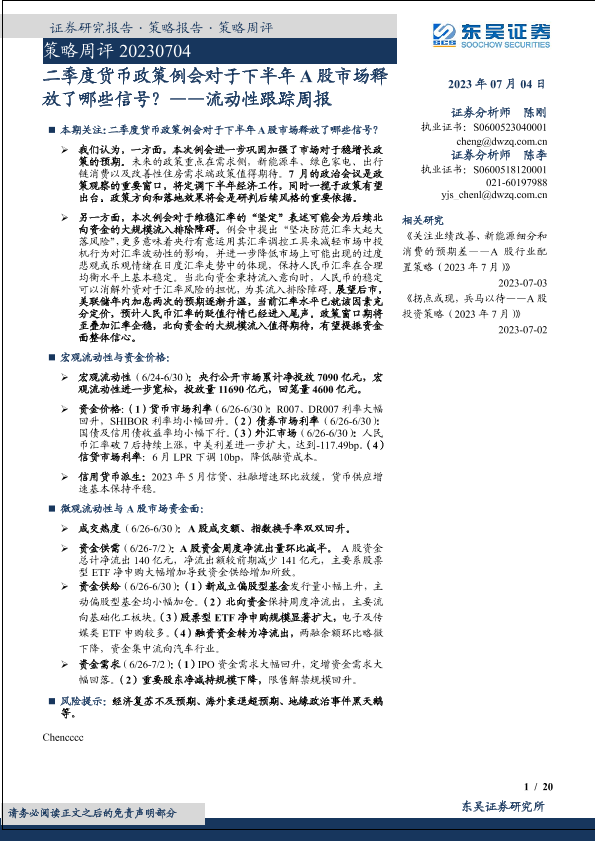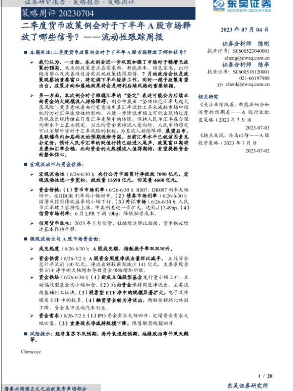 【东吴证券】【20230704】二季度货币政策例会对于下半年A股市场释放了哪些信号?——流动性跟踪周报-20页