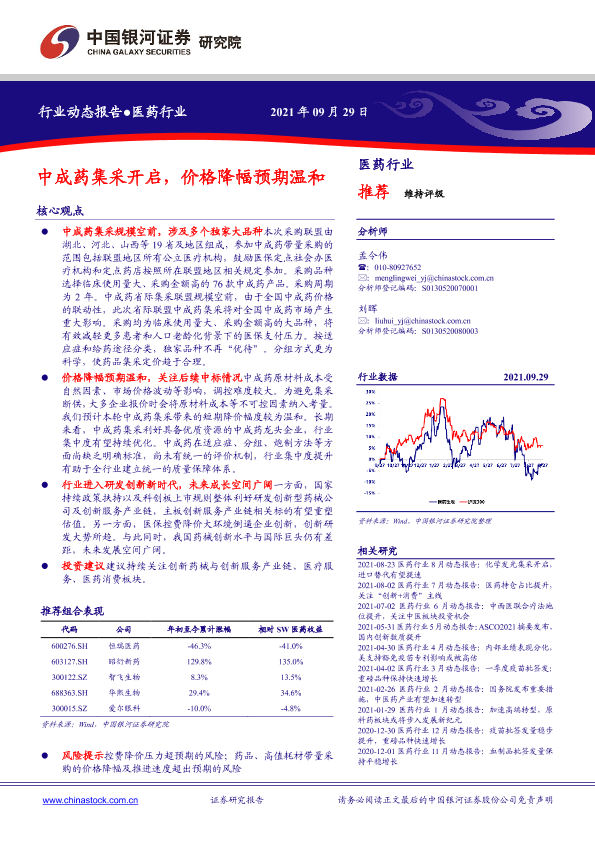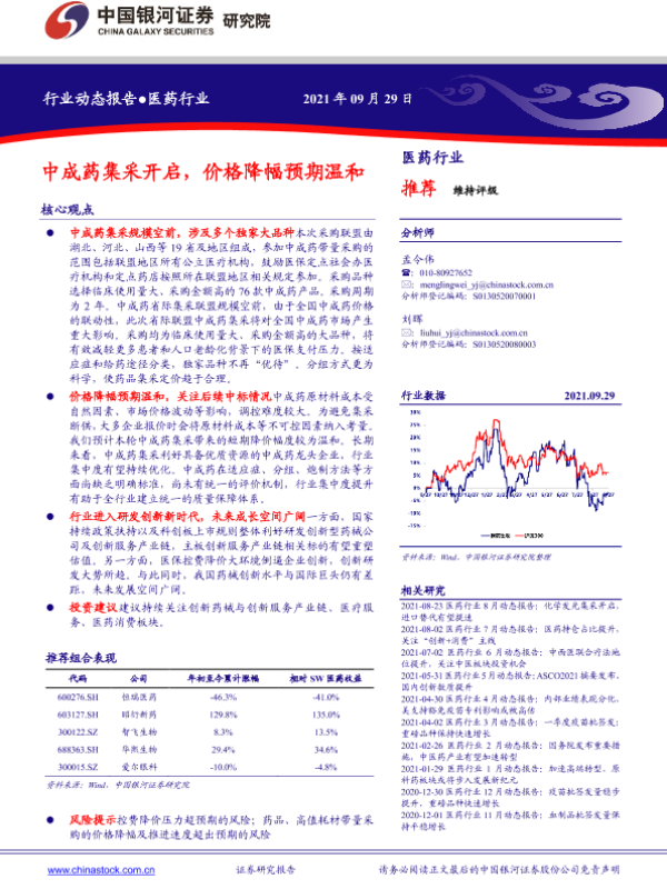 【银河证券】【20210929】医药行业动态报告:中成药集采开启,价格降幅预期温和-37页