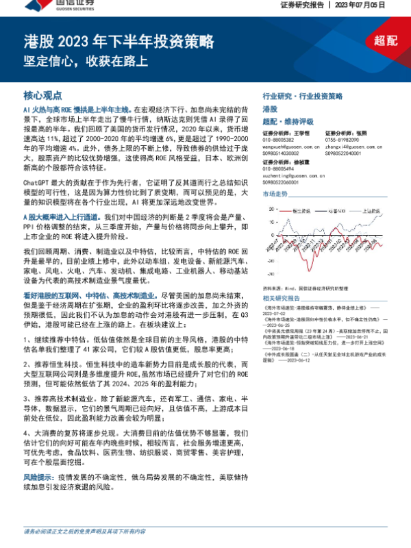 【国信证券】【20230705】港股2023年下半年投资策略:坚定信心,收获在路上-43页