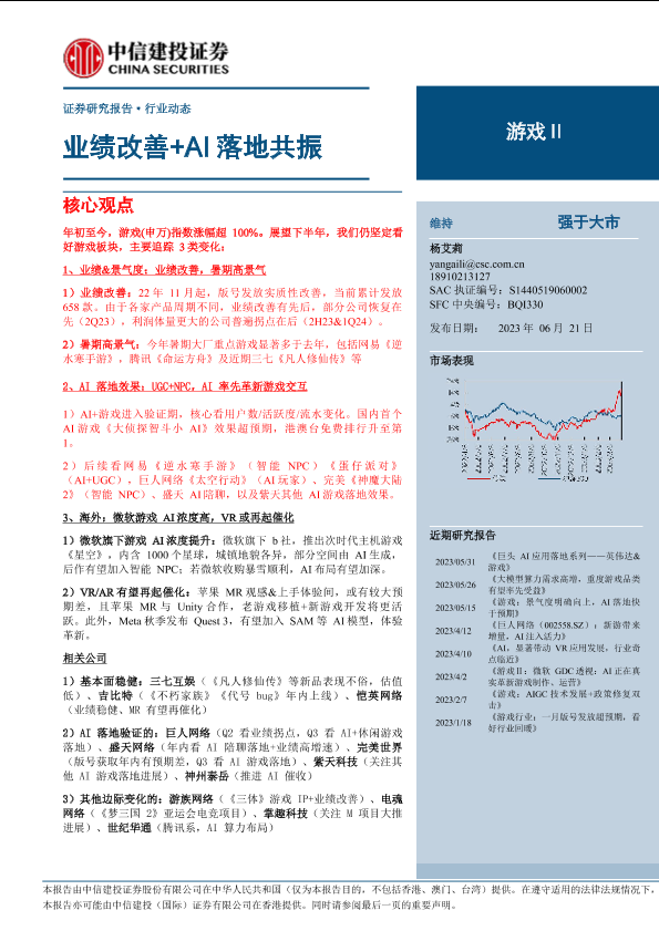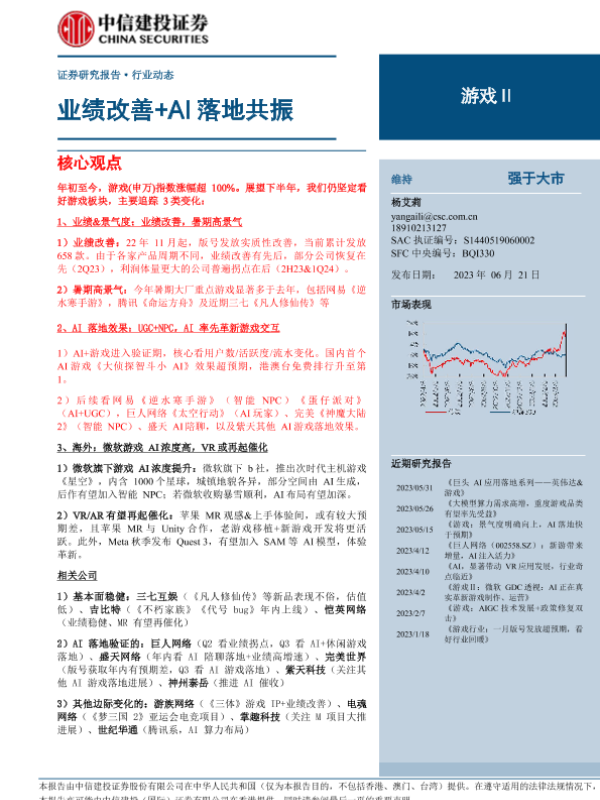 【中信建投证券】【20230621】游戏行业:业绩改善+AI落地共振-16页