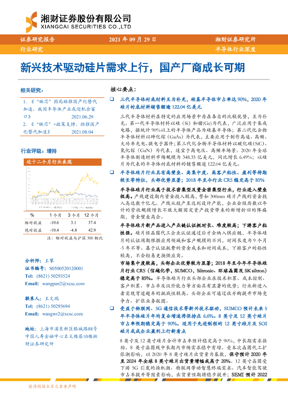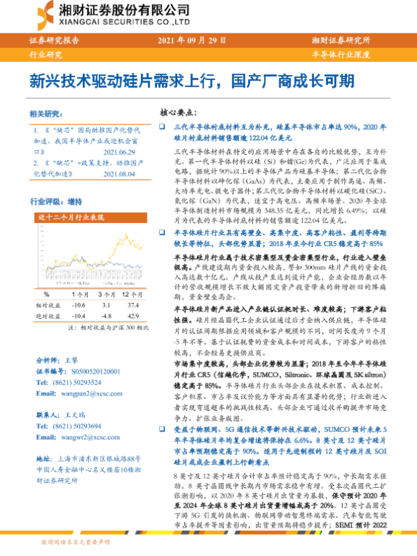 【湘财证券】【20210929】新兴技术驱动硅片需求上行,国产厂商成长可期-25页