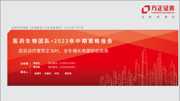 【方正证券】【20230703】生物医药行业2023中期策略报告:疫后诊疗复苏正当时,全年增长有望前低后高-67页