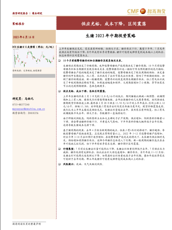 【招商期货】【20230616】生猪2023年中期投资策略:供应充裕,成本下降,区间震荡-18页