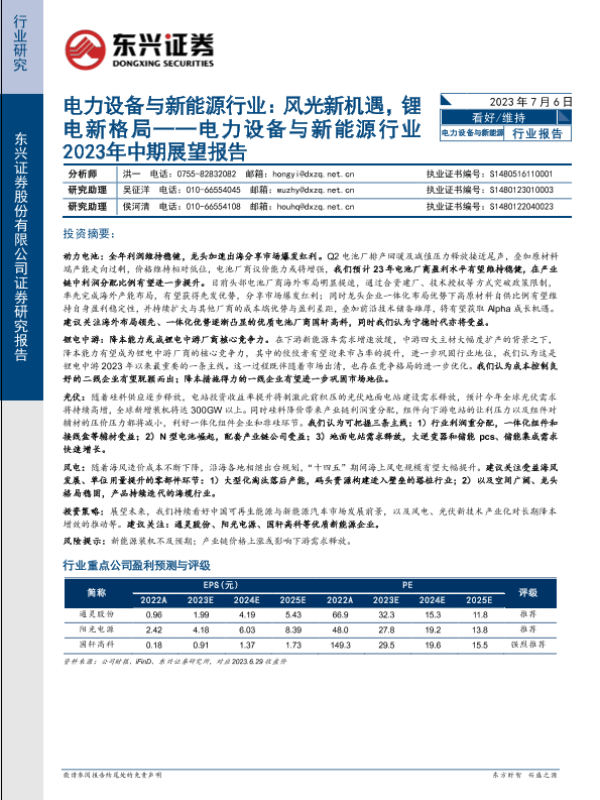【东兴证券】【20230706】电力设备与新能源行业2023年中期展望报告:风光新机遇,锂电新格局-30页