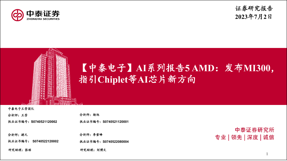 【中泰证券】【20230702】电子行业AI系列报告5 AMD:发布MI300,指引Chiplet等AI芯片新方向-37页