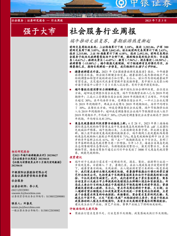 【中银证券】【20230703】社会服务行业周报:端午推动文旅复苏,暑期旅游热度渐起-20页
