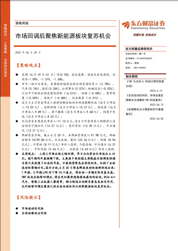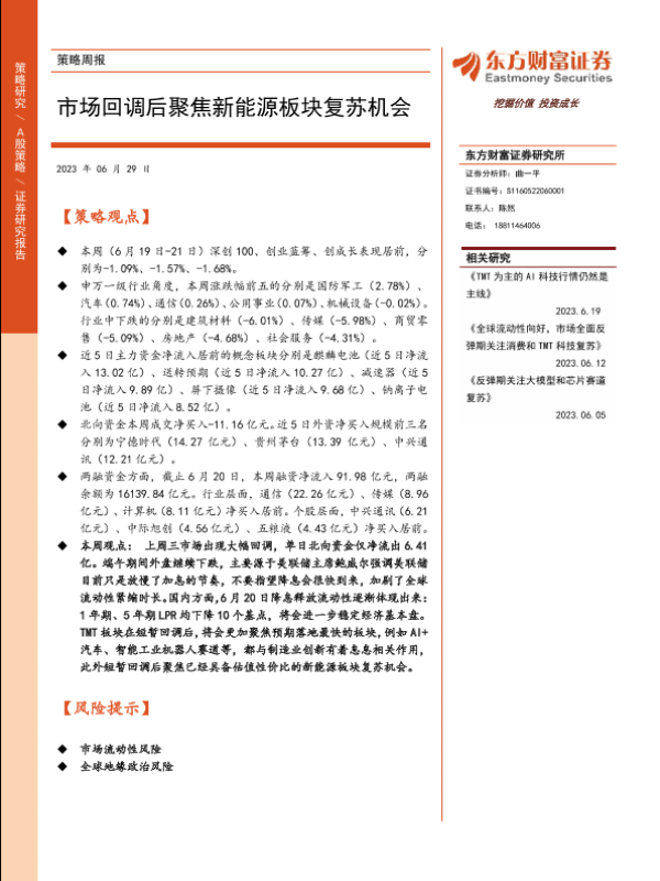 【东方财富证券】【20230629】策略周报:市场回调后聚焦新能源板块复苏机会-15页