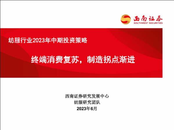 【西南证券】【20230704】纺服行业2023年中期投资策略:终端消费复苏,制造拐点渐进-30页