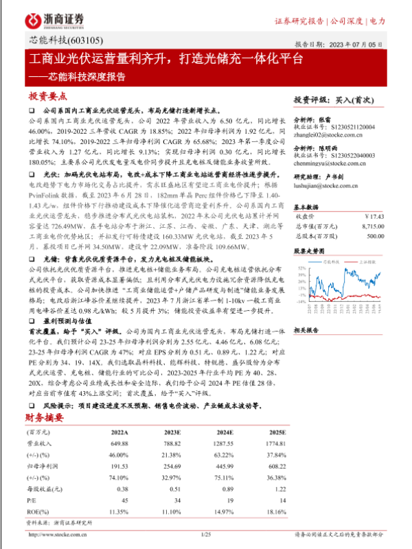 【浙商证券】【20230705】芯能科技深度报告:工商业光伏运营量利齐升,打造光储充一体化平台-25页
