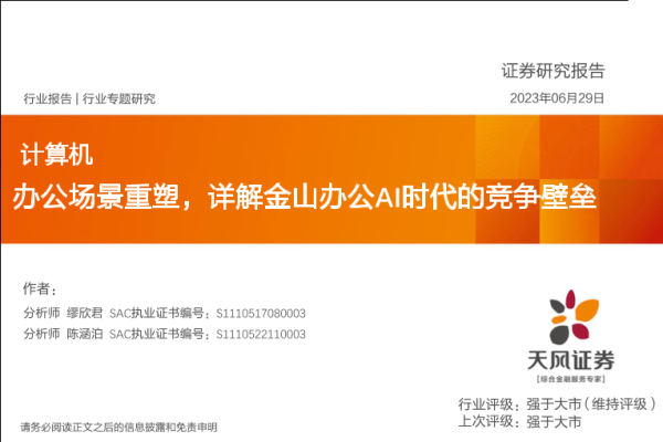 【天风证券】【20230629】计算机行业专题研究:办公场景重塑,详解金山办公AI时代的竞争壁垒-26页