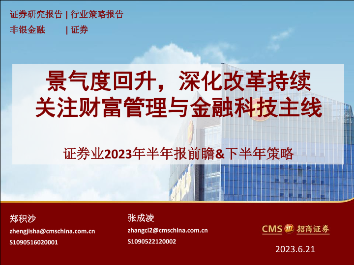 【海通证券】【20230621】证券行业2023年半年报前瞻&下半年策略:景气度回升,深化改革持续,关注财富管理与金融科技主线-15页