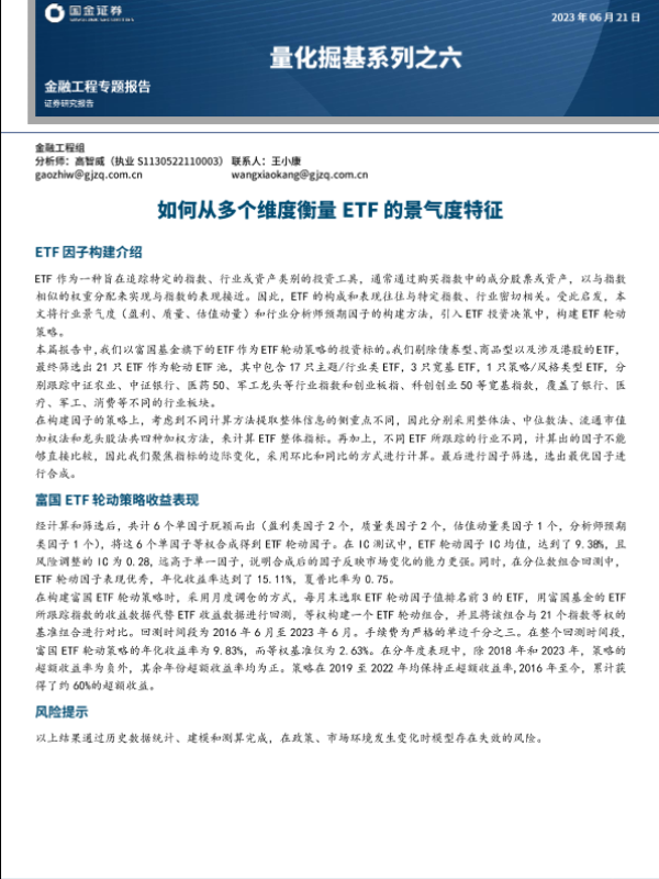 【国金证券】【20230621】量化掘基系列之六:如何从多个维度衡量ETF的景气度特征-17页