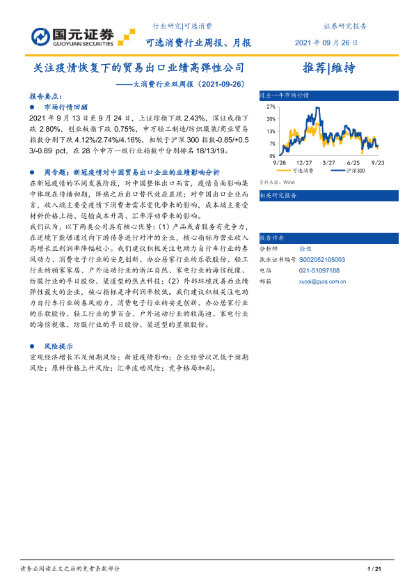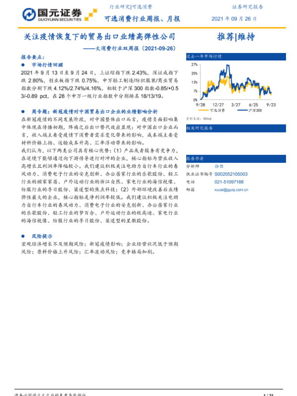 【国元证券】【20210926】大消费行业双周报:关注疫情恢复下的贸易出口业绩高弹性公司-21页
