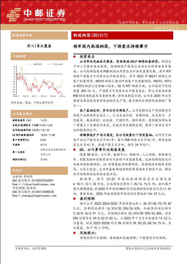 【中邮证券】【20230703】铜冠铜箔(301217)领军国内高端铜箔,下游需求持续攀升-21页