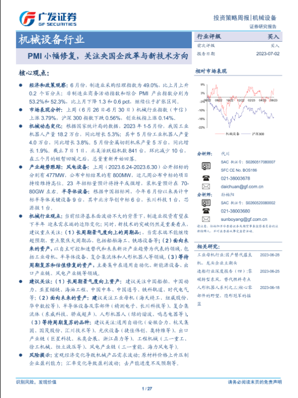 【广发证券】【20230702】页机械设备行业投资策略周报:PMI小幅修复,关注央国企改革与新技术方向-27页