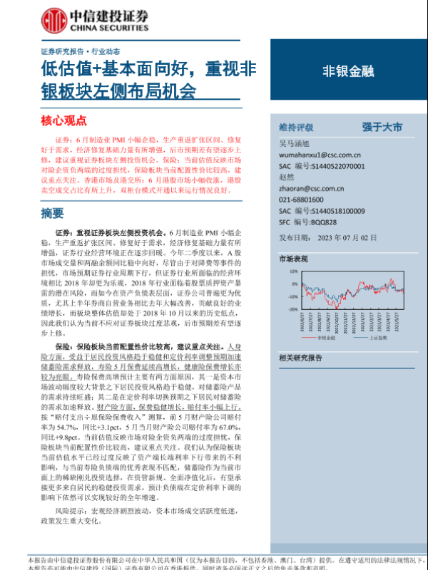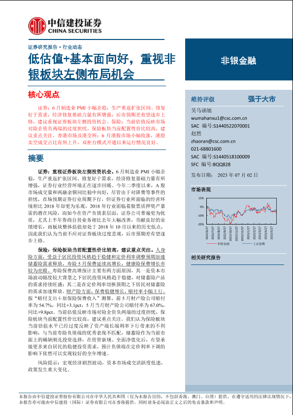 【中信建投证券】【20230702】非银金融行业:低估值+基本面向好,重视非银板块左侧布局机会-21页