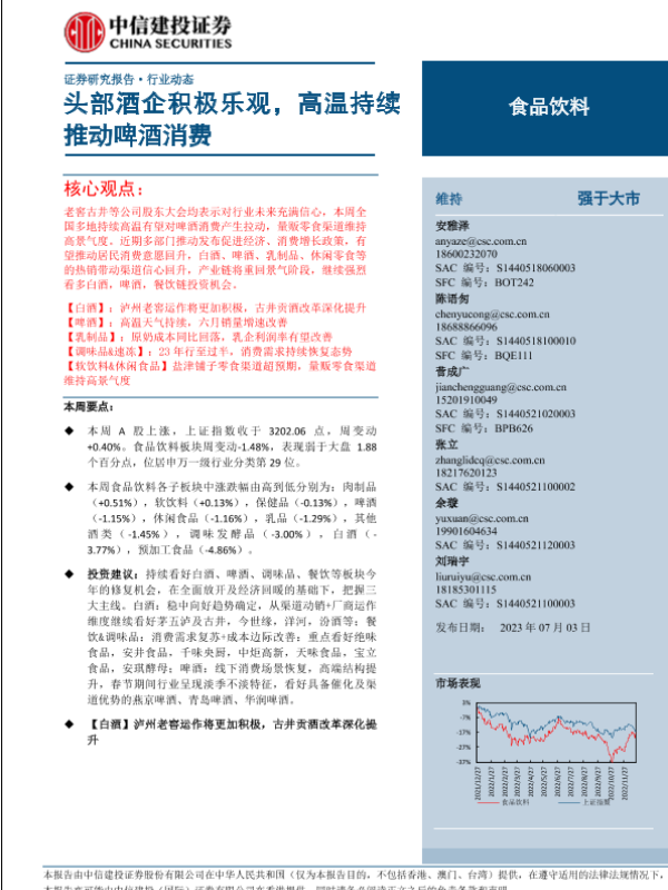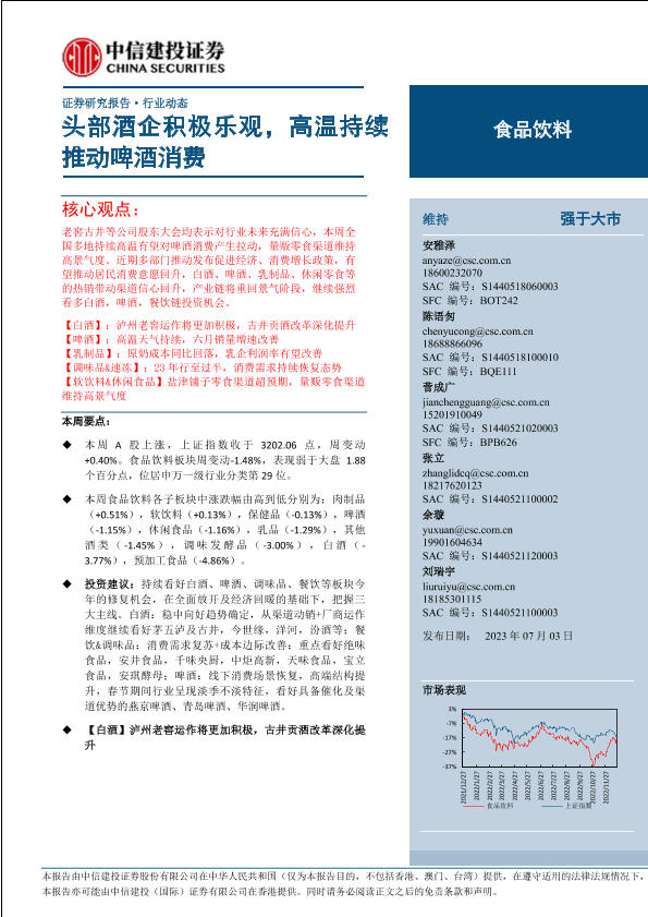 【中信建投证券】【20230703】食品饮料行业:头部酒企积极乐观,高温持续推动啤酒消费-24页