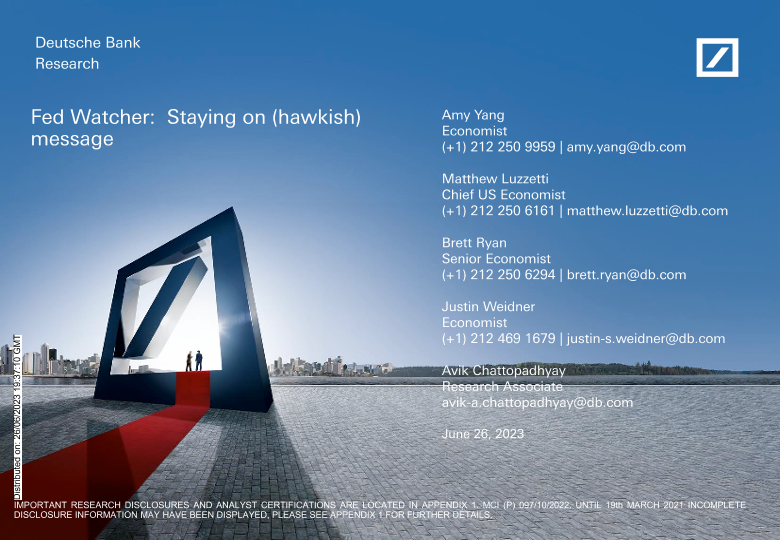【Deutsche Bank】【20230626】Deutsche Bank-Fed Watcher Staying on (hawkish) message-9页